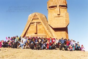 Armenian children on a field trip in 1998 to see the ‘We are Our Mountains’ that represent mother and father.